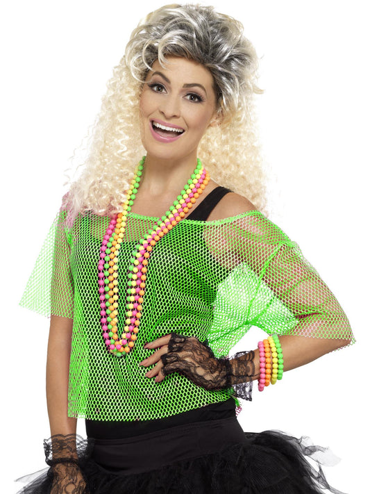 Fishnet Gloves, Neon Green, Long -