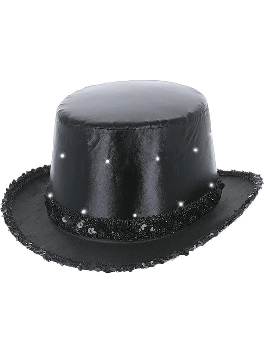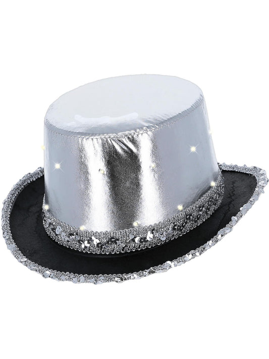 LED Light Up Metallic Top Hat, Silver -