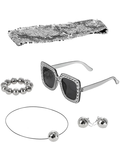 70s Disco Ball Jewellery Kit, Headband, Neckace, Earrings, Bracelet & Glasses