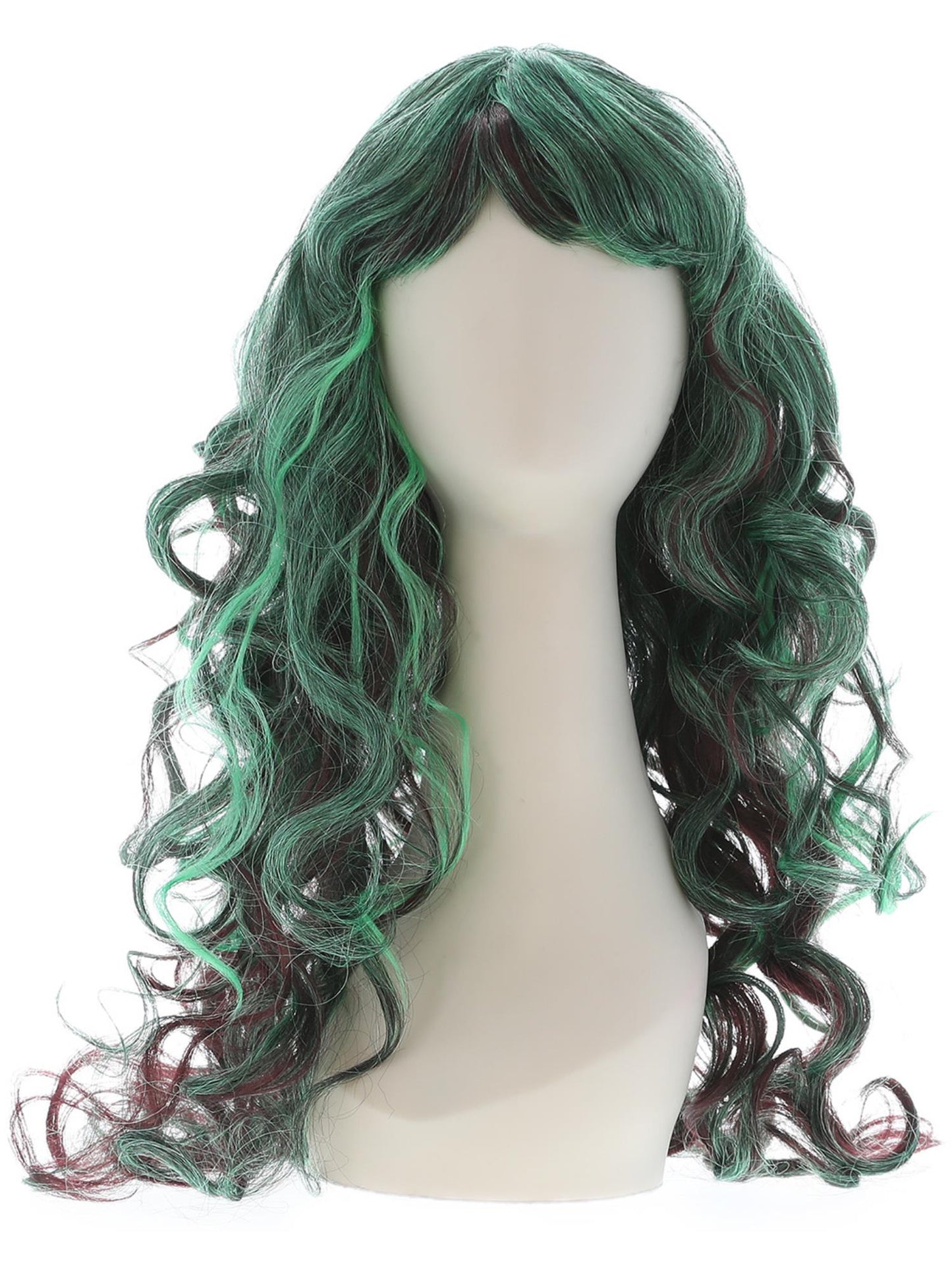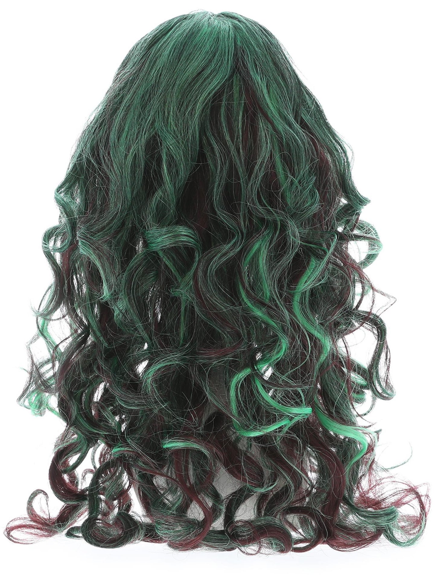 Blood Drip Monster Wig, Black & Green, Long Curly with Fringe, Green and Purple