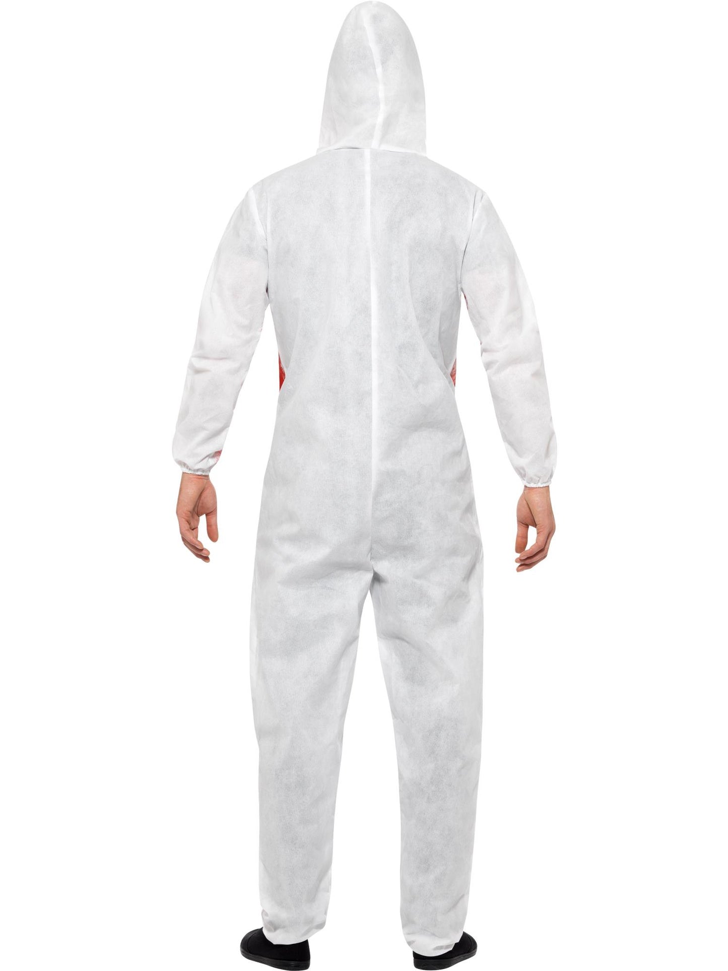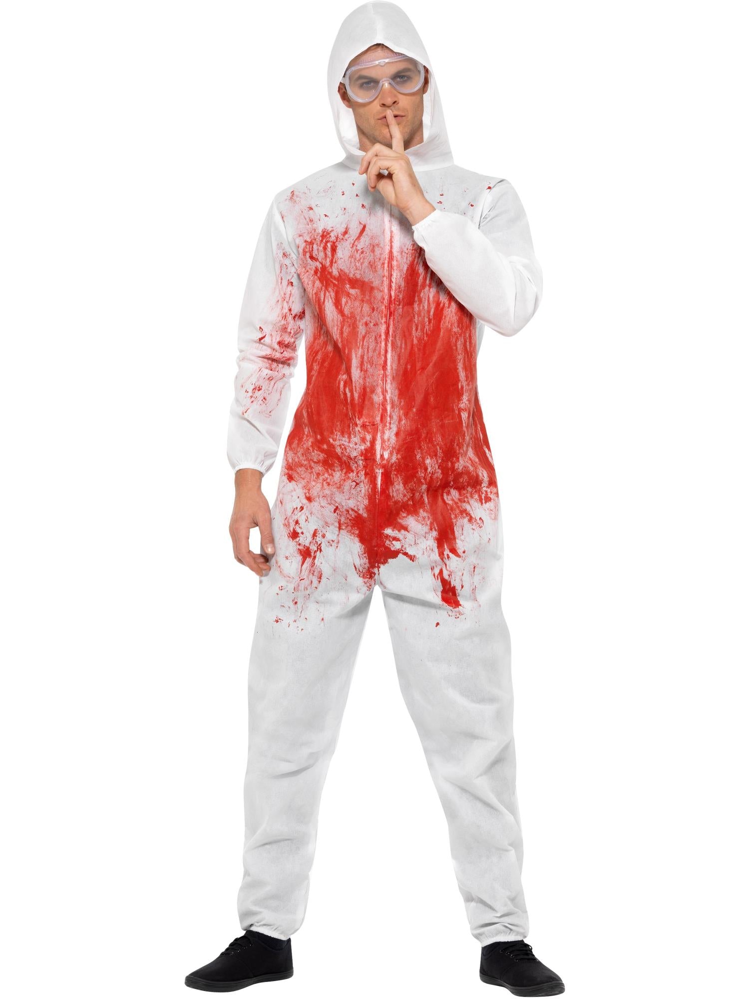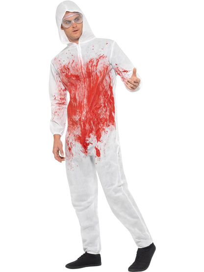 Men's Bloody Forensic Overall Costume, Red, with Goggles & Jumpsuit.