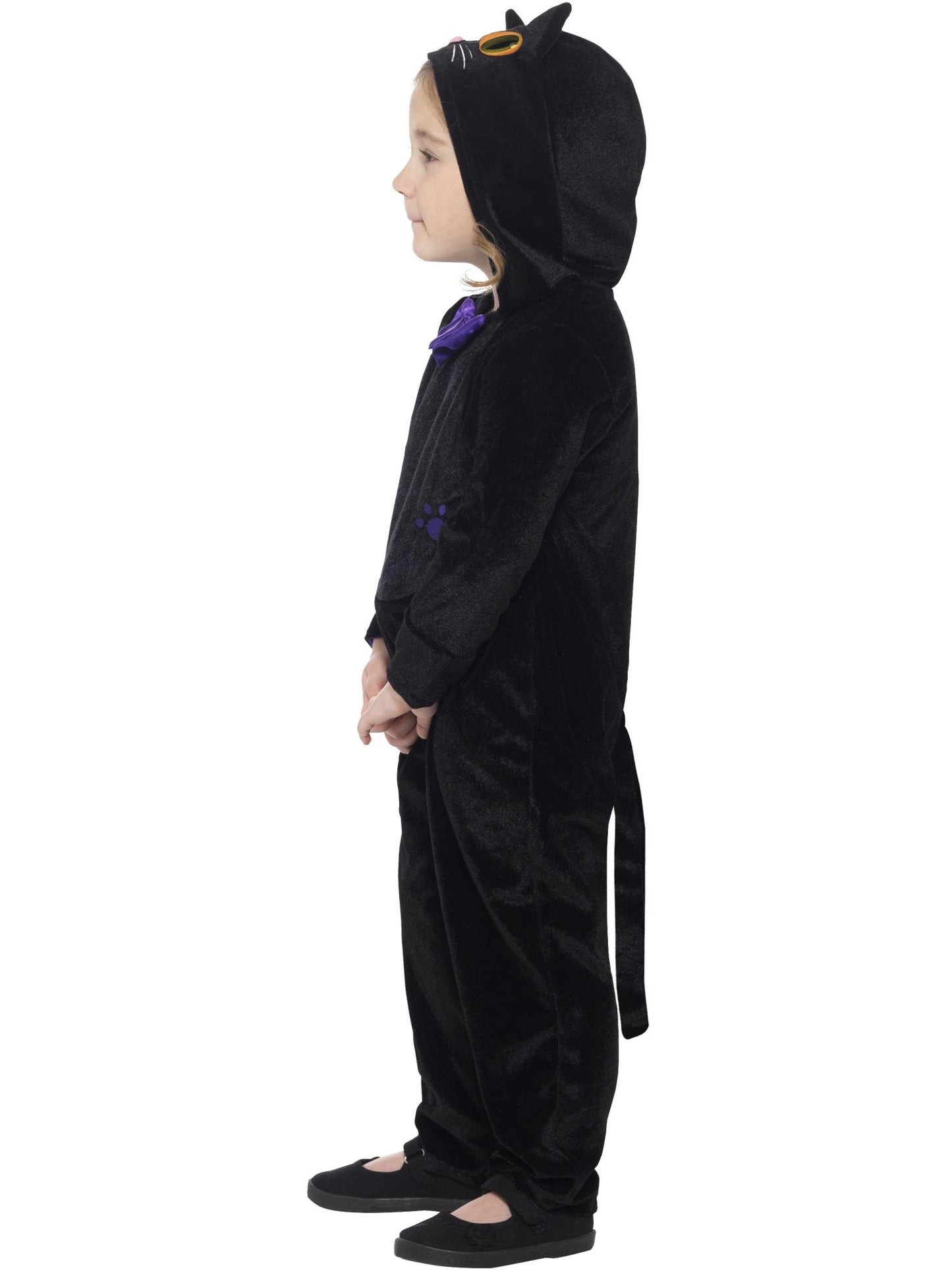 This Toddler Cat Costume is perfect for Halloween, animal and themed fancy dress parties. This costume is a black hooded jumpsuit with 3D printed eyes, for a fuss free but effective costume. This costume is available in ages 1 to 2 years, and 3 to 4 years.