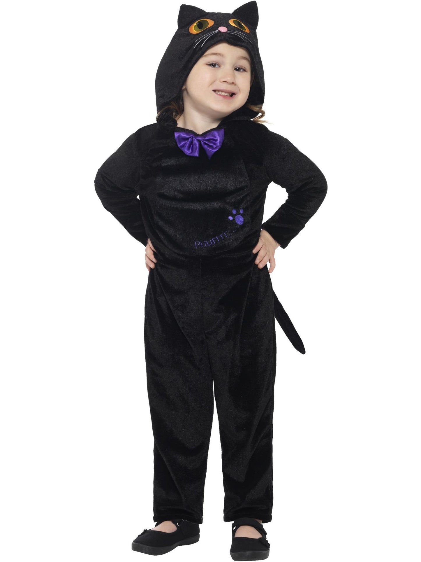 Cat Toddler Costume, Black, with Hooded Jumpsuit & 3D Printed Eyes
