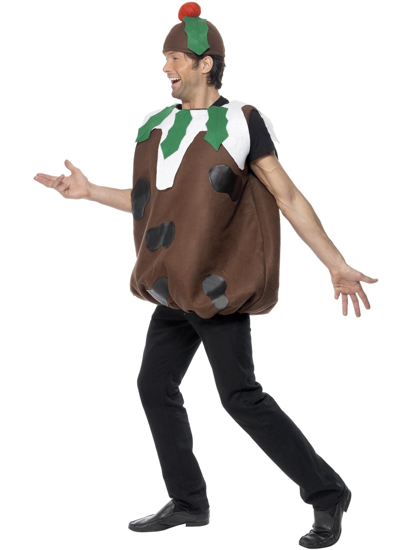 Look good enough to eat with the Christmas Pudding Costume. This male Christmas fancy dress costume includes a tabard and hat. It's perfect for a party.