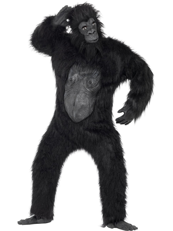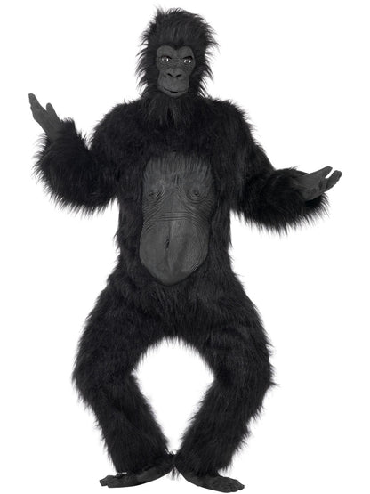 Deluxe Gorilla Costume, Black, Bodysuit with Rubber Chest, Mask, Hands and Feet