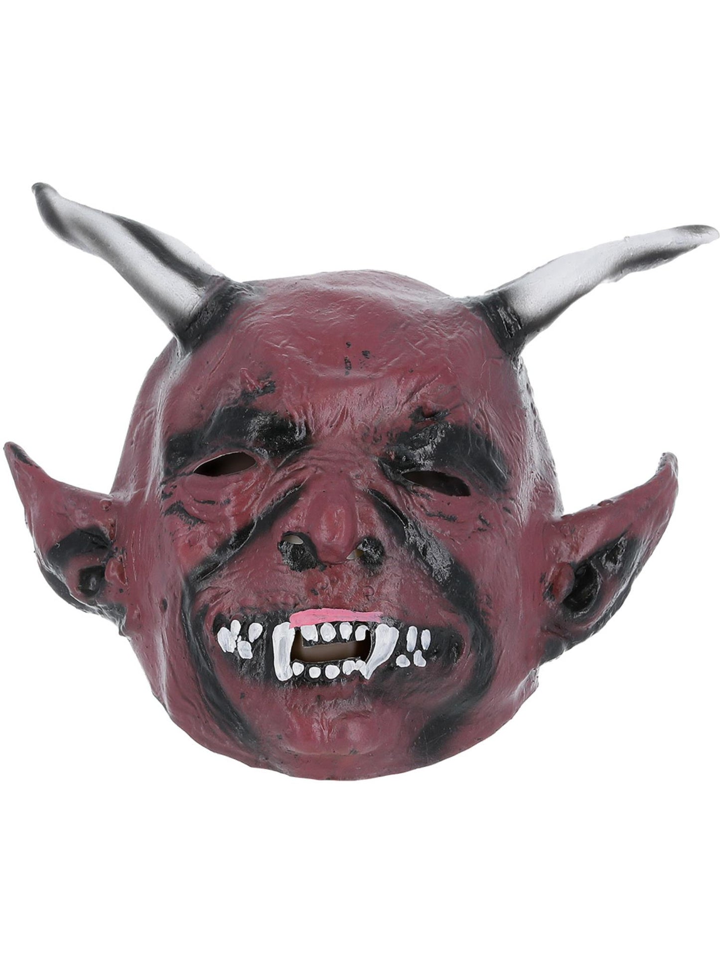 Transform into the scariest character with the Devil Demon Mask. This gruesome full head Halloween fancy dress accessory comes with attached horns.
