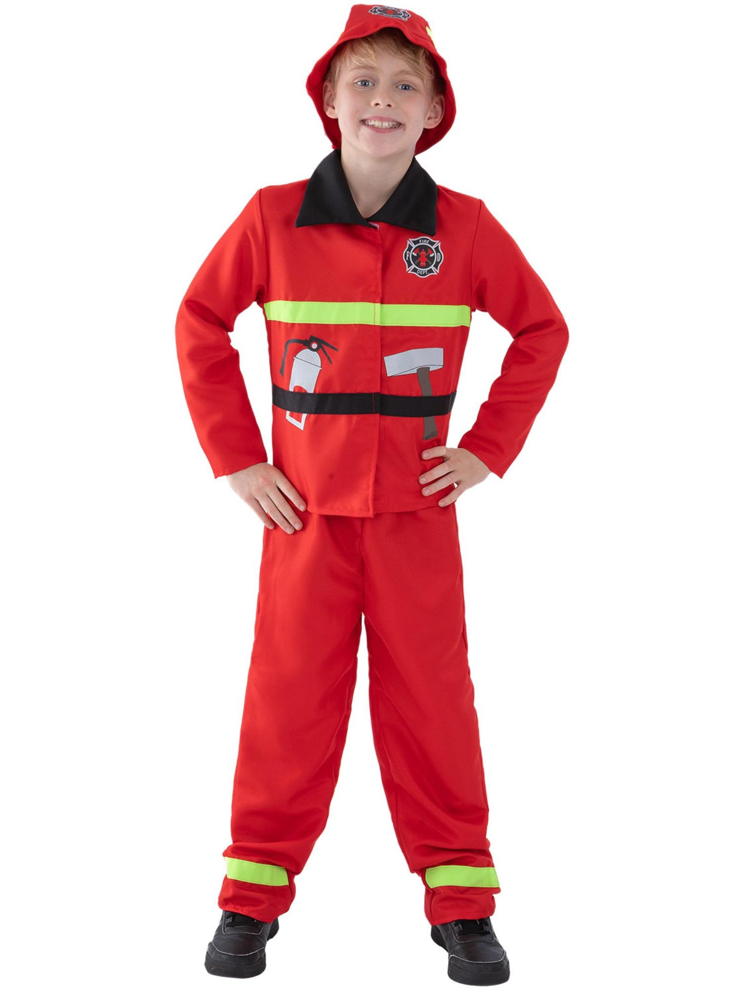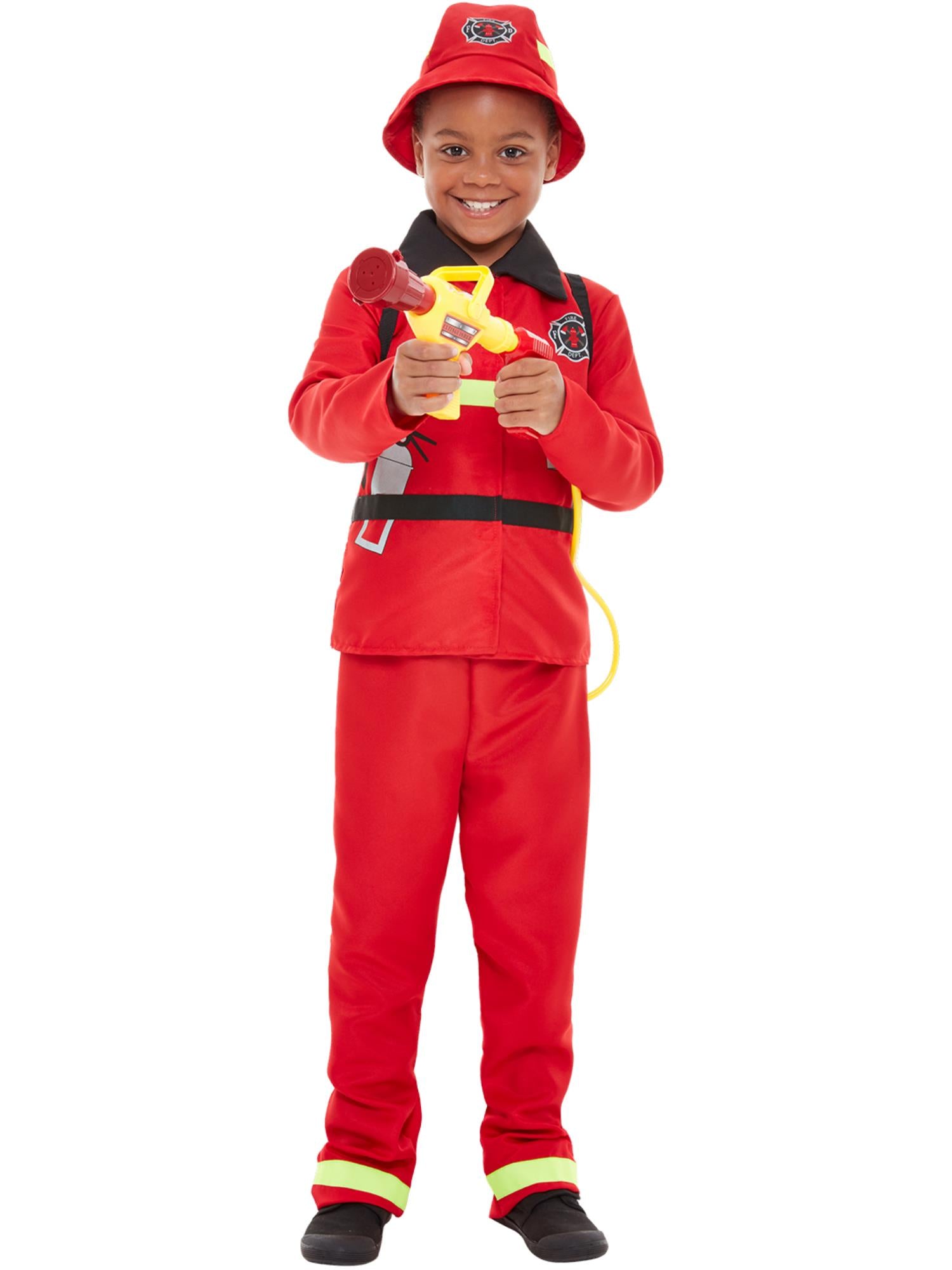 Fire Fighter Costume, Red, with Jacket, Trousers & Hat.