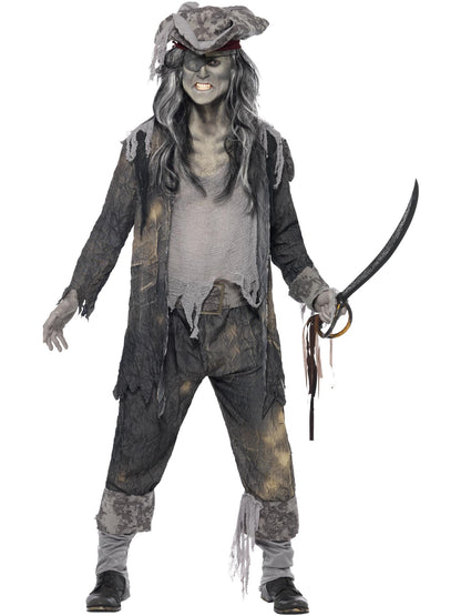 Ghost Ship Ghoul Costume, Grey, with Coat, Trousers and Hat