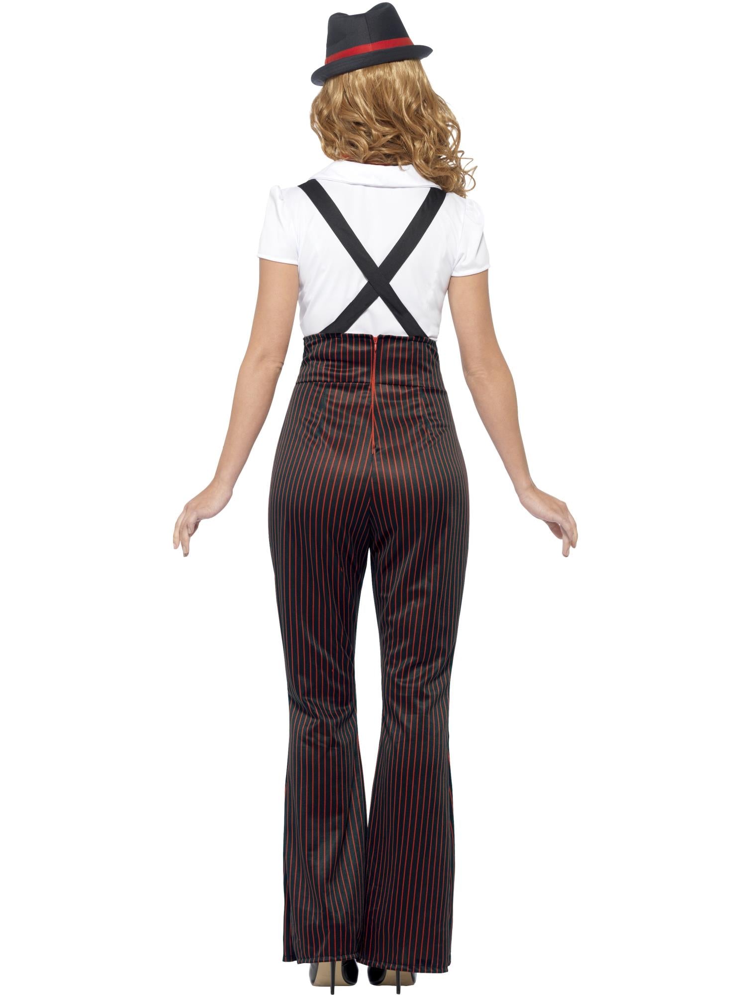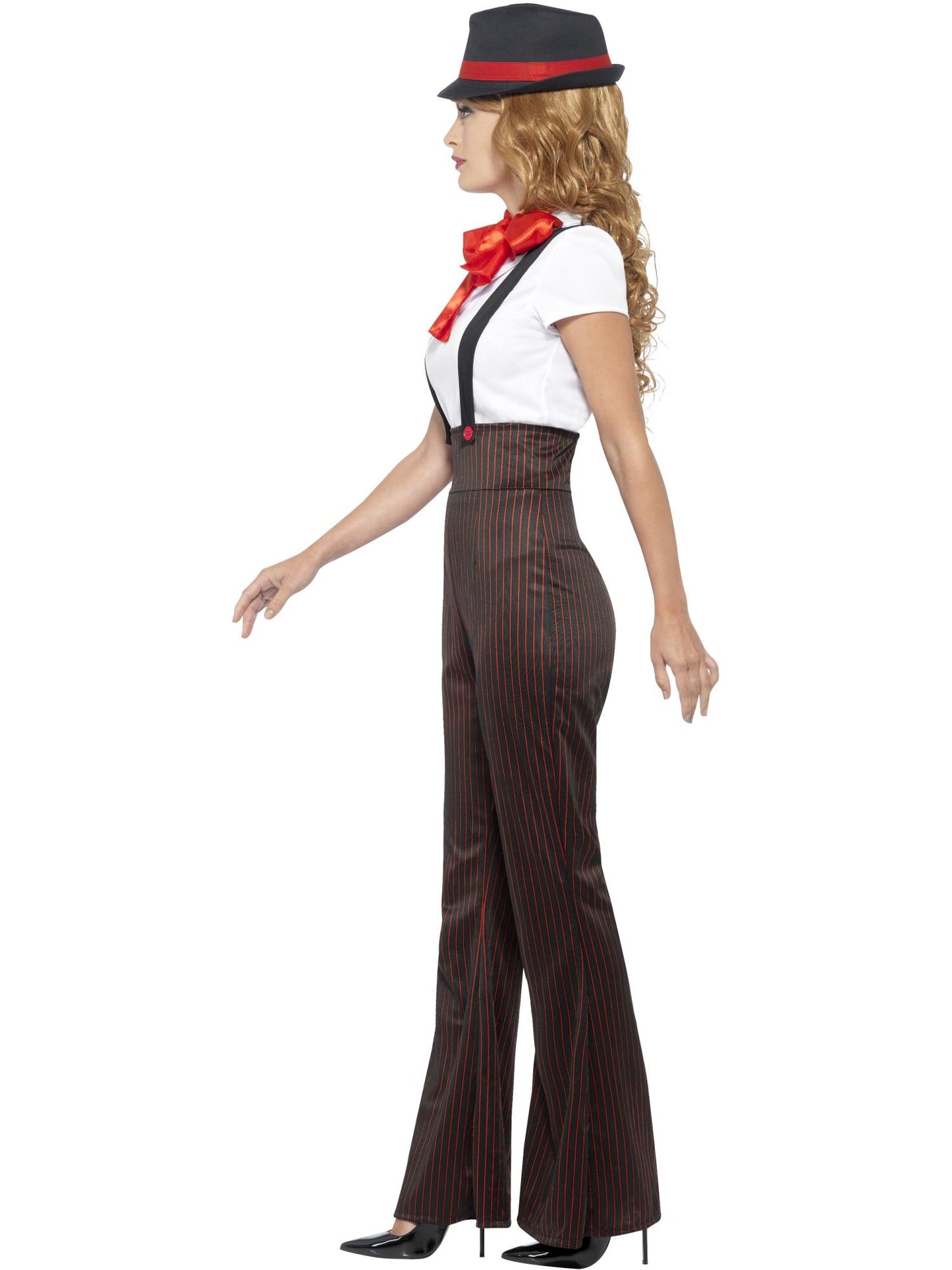 A gangster girl has never looked so glam! Transform into the most stylish mobster your fellow party goers will have ever seen in the Glam Gangster Costume. With black and red trousers, top, mock braces, neck tie and hat.