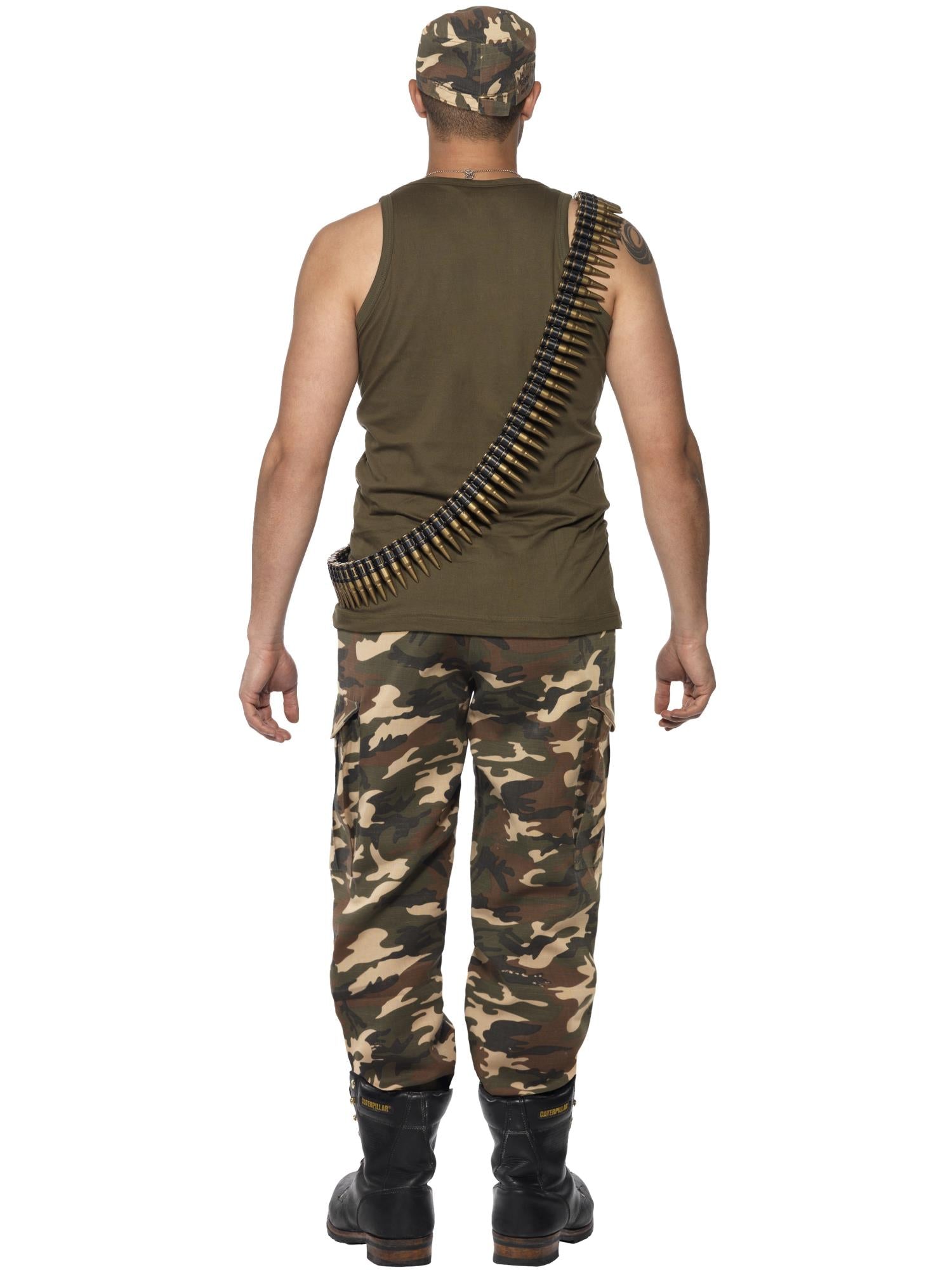 Khaki Camo Deluxe Costume, Male, Khaki Green, includes Vest, Trousers and hat.