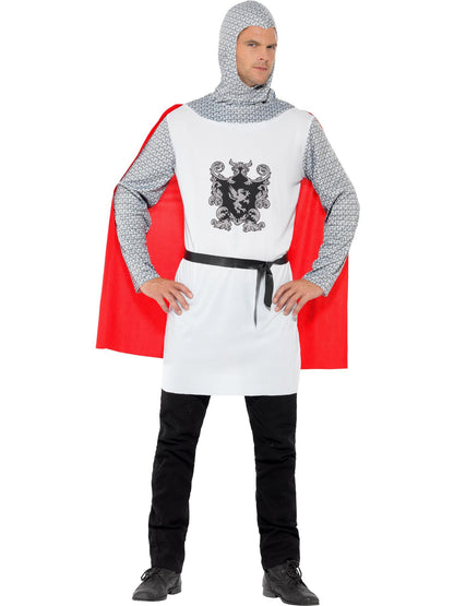 Join the knights at the round table in this awesome Knight Costume. The top features an attached cape along with a belt and hood, to ensure you're the best looking knight at that next fancy dress party or night out.