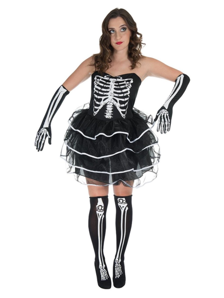 Ladies Skeleton Dress, with Printed Gloves and Stockings.
