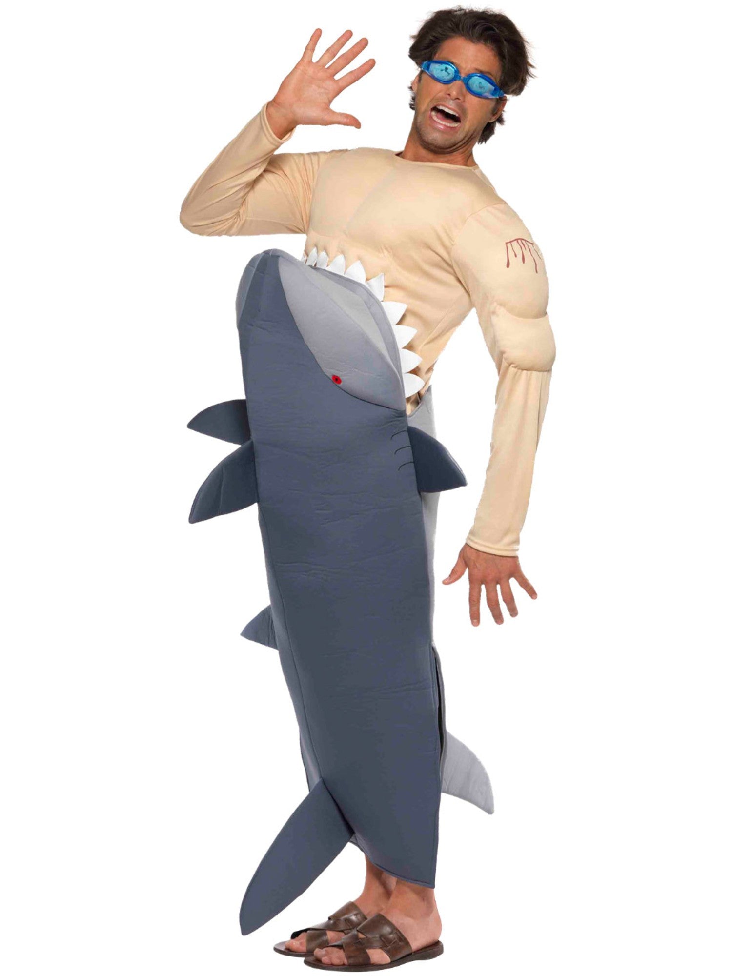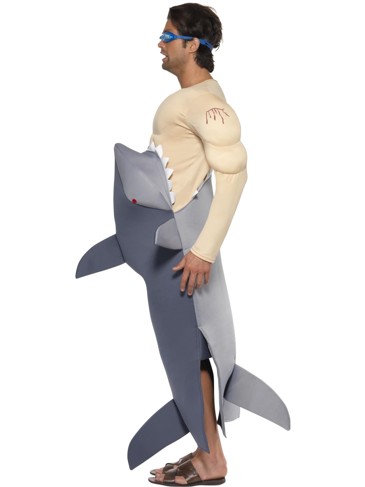 Man-Eating Shark Costume, Grey, with Shark Bodysuit & Goggles