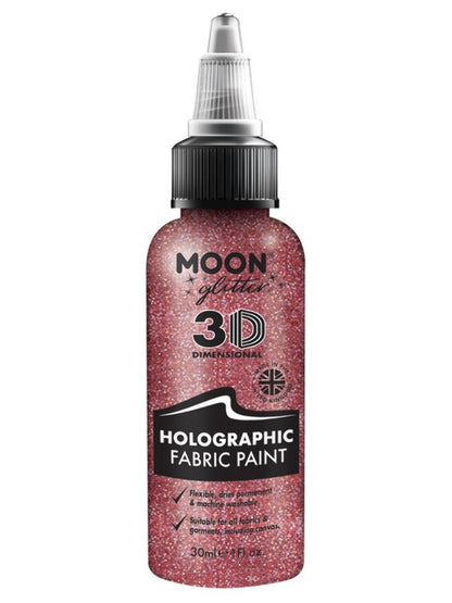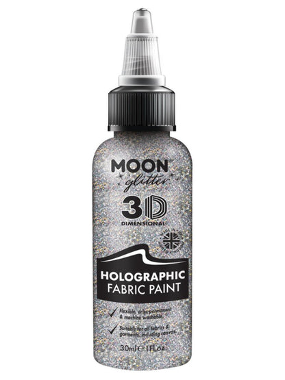 Moon Glitter Holographic 3D Fabric Paint by Moon Creations can be used to add glittery designs and patterns to a range of fabrics! The premium quality 3D Paint formula results in a soft flexible surface that is fixed and waterproof once dried.