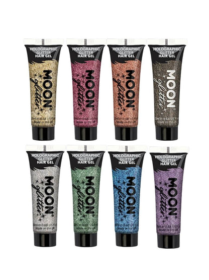 The hair is often neglected when it comes to a fancy dress makeup look, people may choose to wear a wig, or leave it natural. But this range of Moon Holographic Glitter Hair Gel by Moon Cosmetics will have you re-thinking those choices!