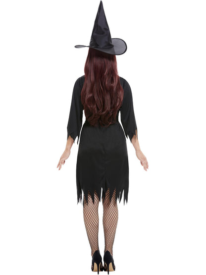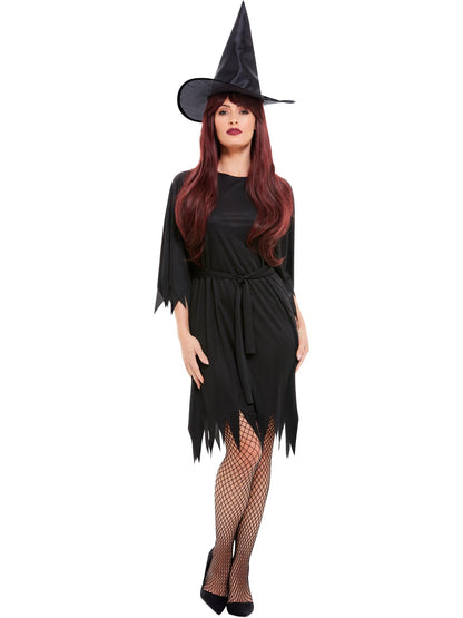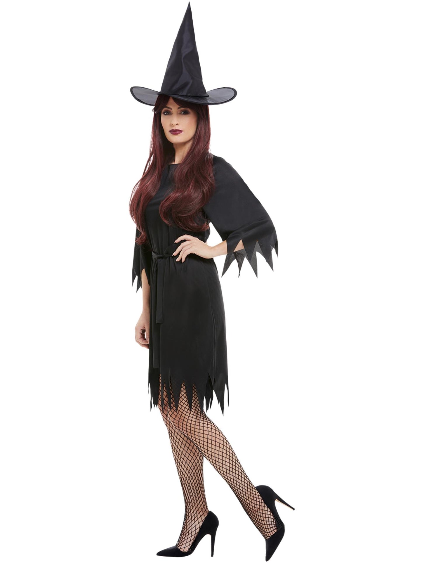 Halloween is the time for witches and cauldrons, broomsticks and spells! This Spooky Witch Costume comes complete with a black knee length dress with significant jagged hemlines, a belt to pull you in at the waist and a coordinating pointy witches hat. Don't forget your witch's broom!.