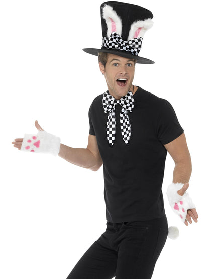Tea Party March Hare Kit, Black & White, Top Hat, Rabbit Ears, Gloves, Bow Tie & Tail.