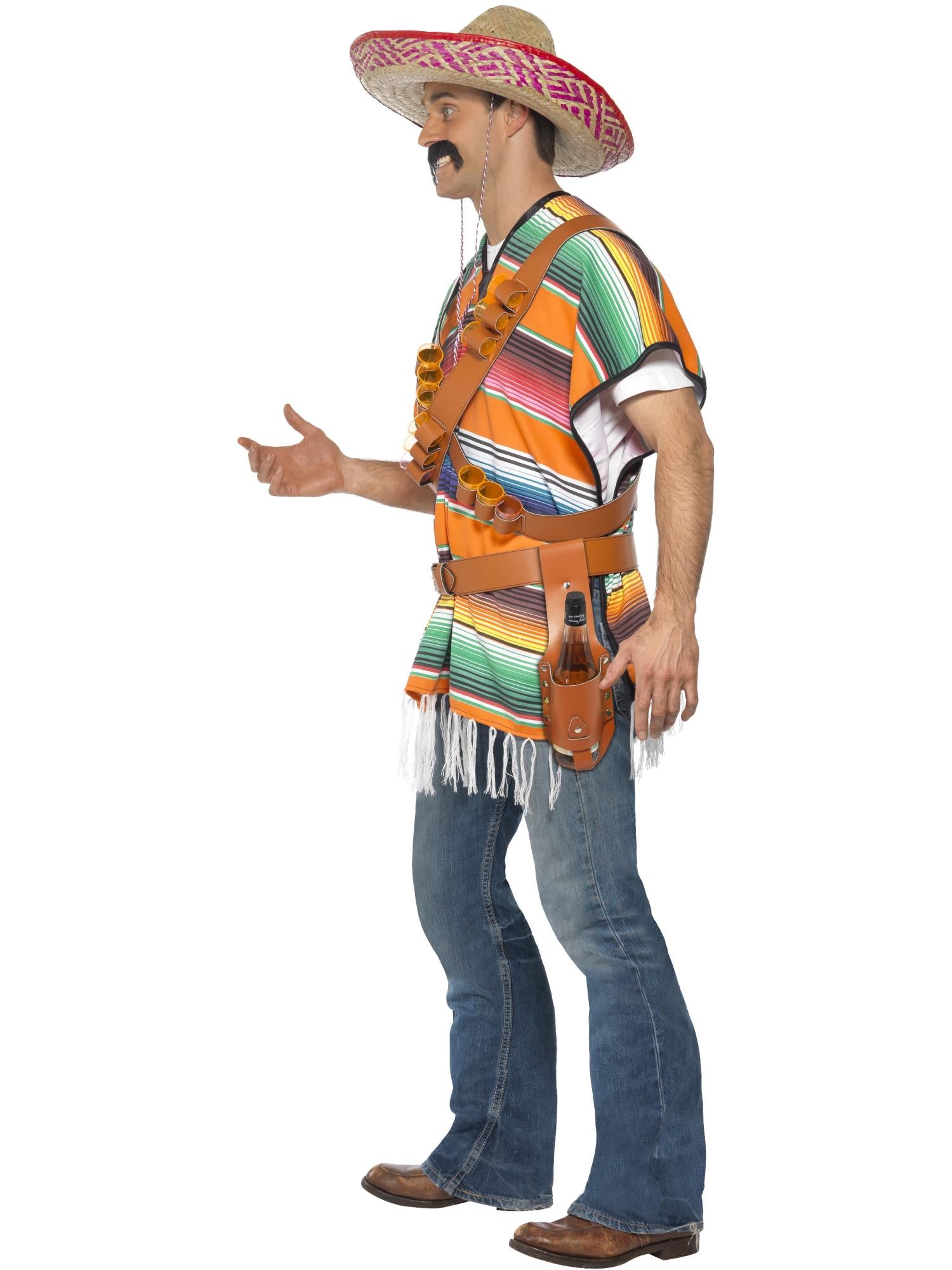 Tequila Shooter Guy Costume, Orange & Green, with Poncho, Belt & Bandolier