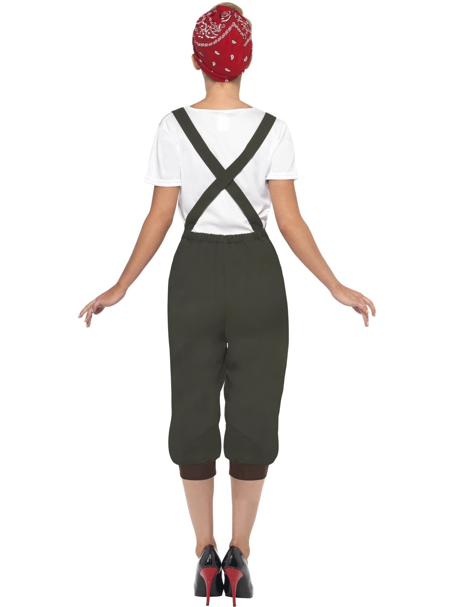 WW2 Land Girl Costume, Green, Top, Dungarees and Headscarf