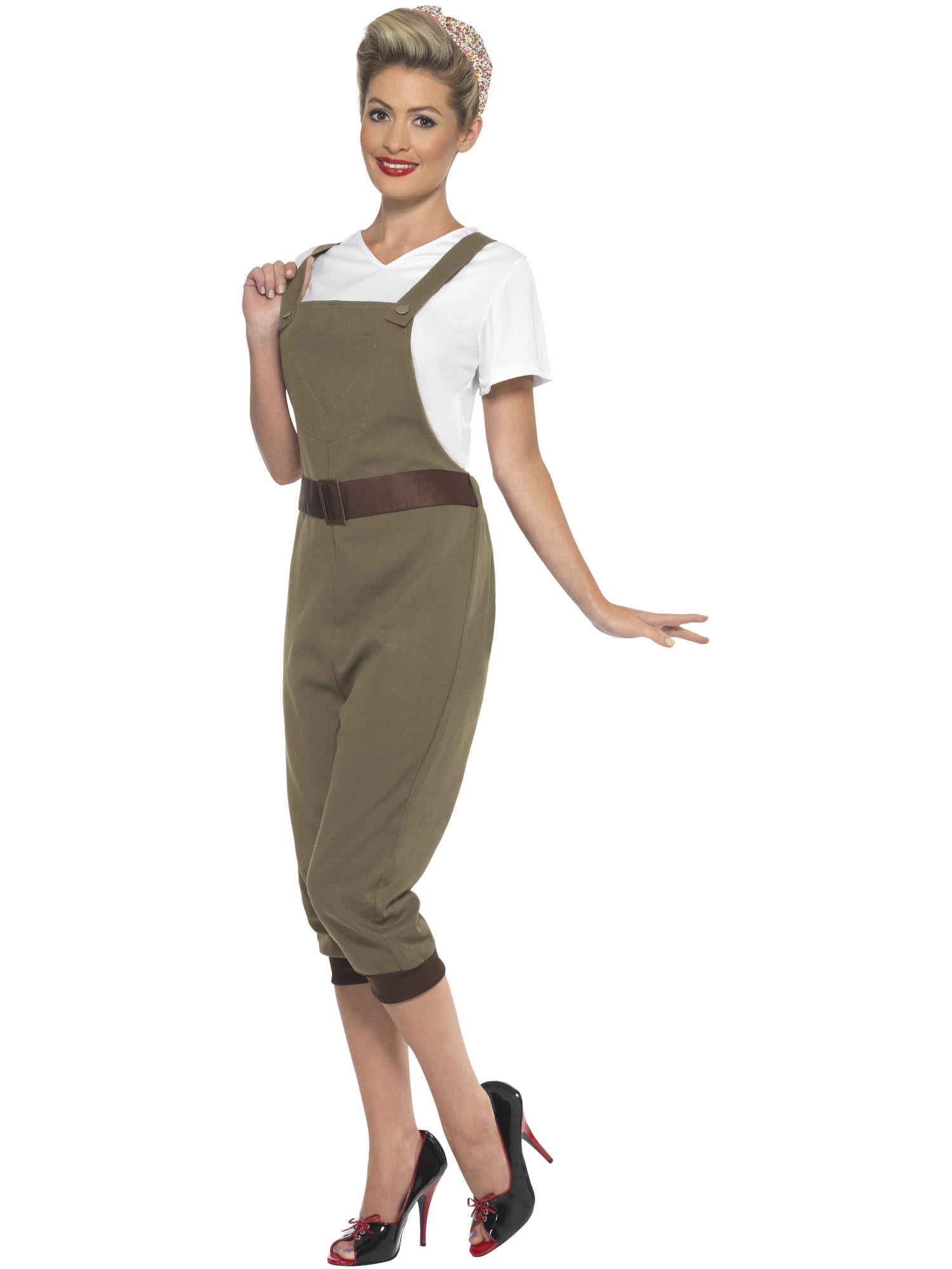The WW2 Land Girl Costume is perfect attire for a 40s party. The authentic 40s military costume includes a top, dungarees and head scarf. To complete the look, fashion your hair into a classic 40s Victory Roll.