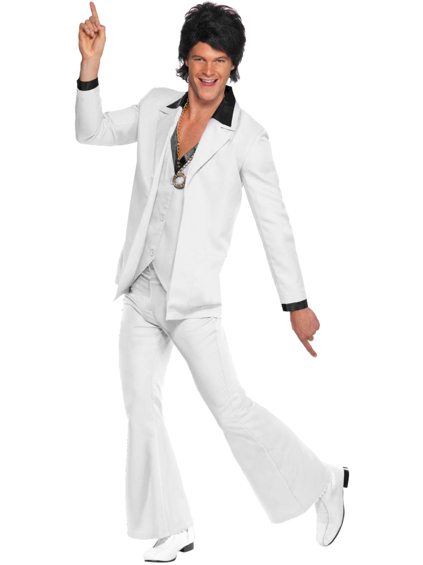 1970s Suit Costume, White, Jacket with Mock Shirt, Waistcoat & Trousers
