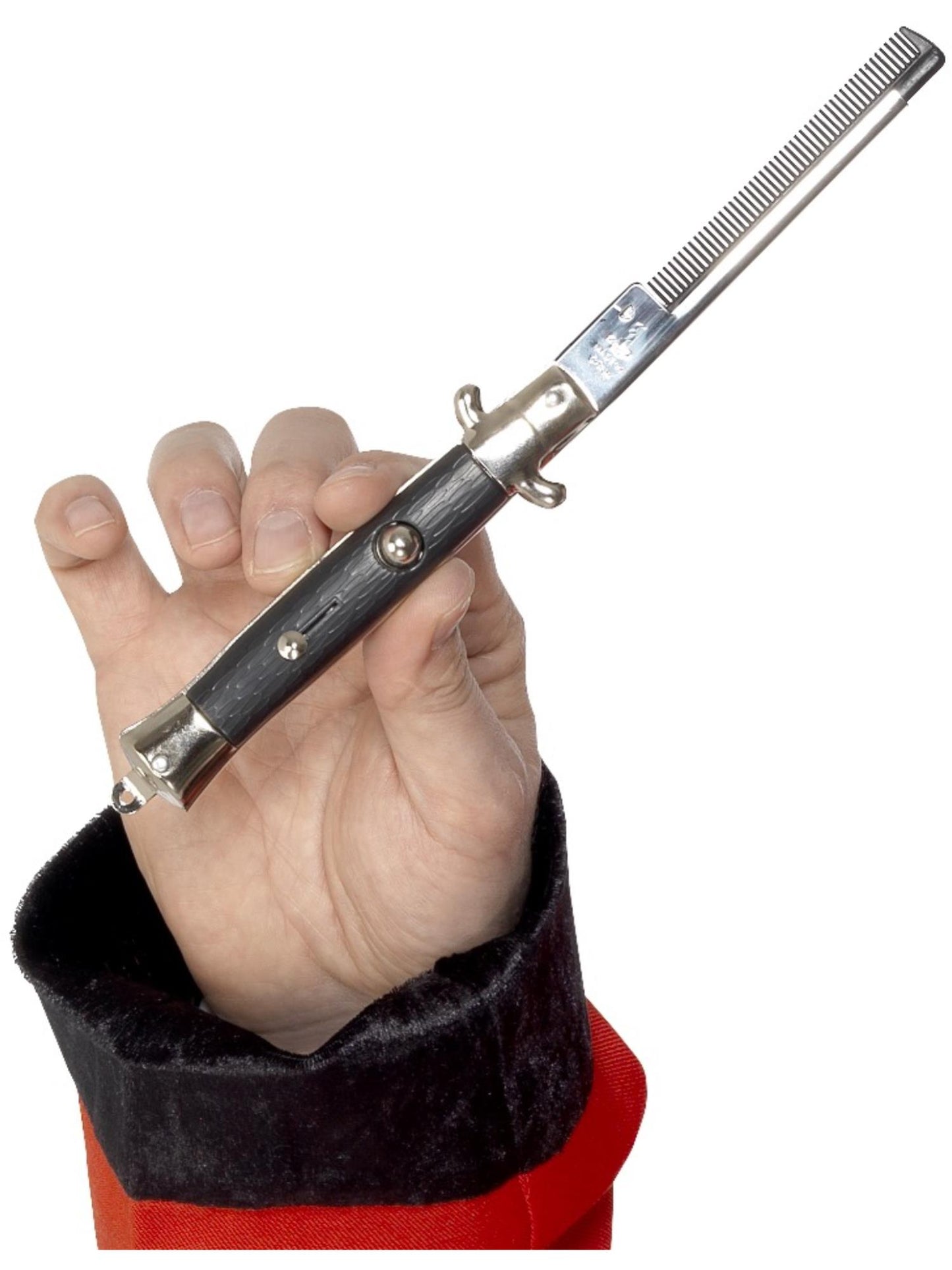 Hey Teddy Boy! Complete your 50s fancy dress costume with the 50s Style Teddy Boy Flick Comb. Make sure you have a 50s style wig to brush the comb through!.