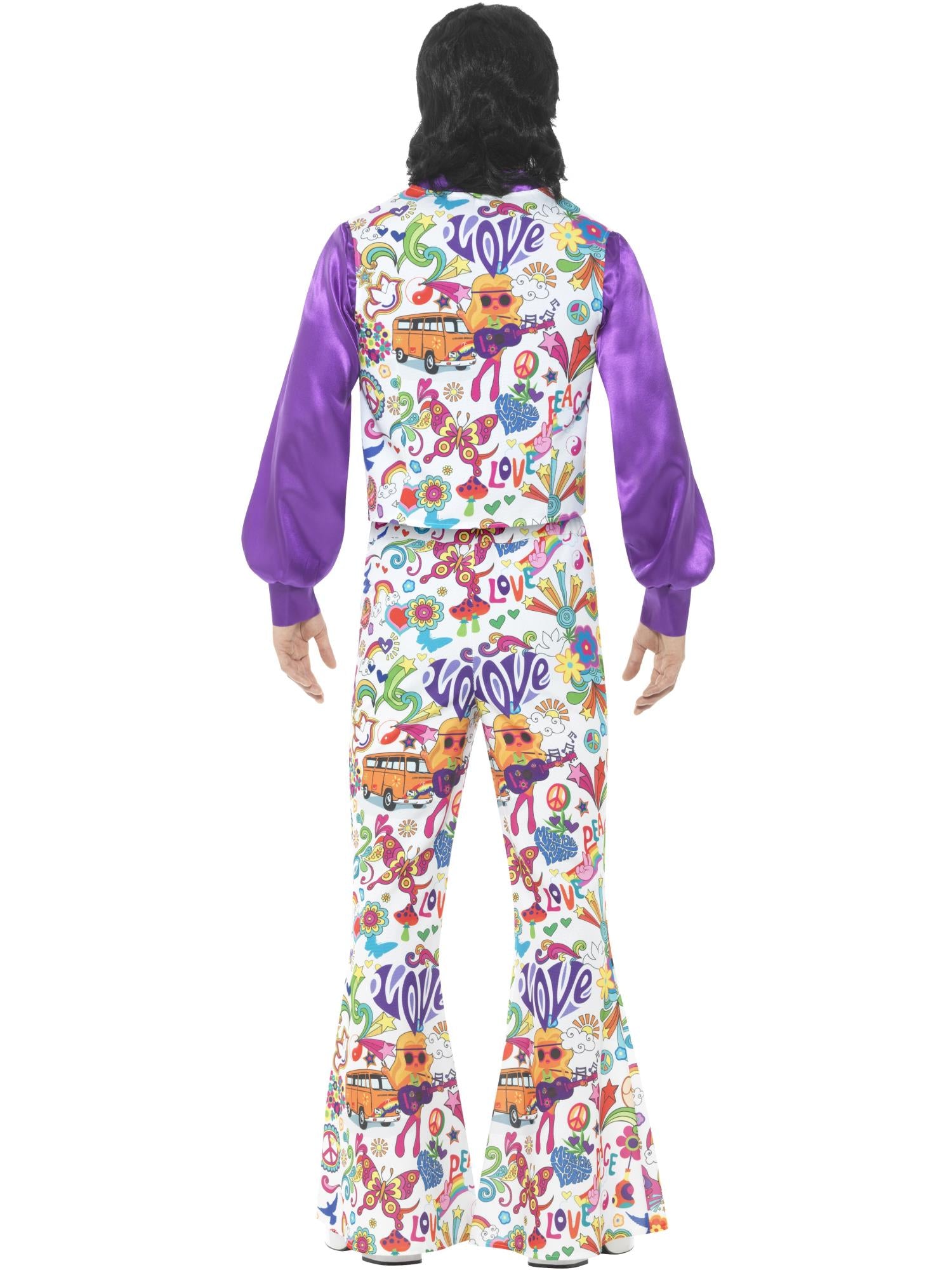 60s Groovy Hippie Costume, Multi-Coloured, with Waistcoat, Shirt & Flared Trousers.
