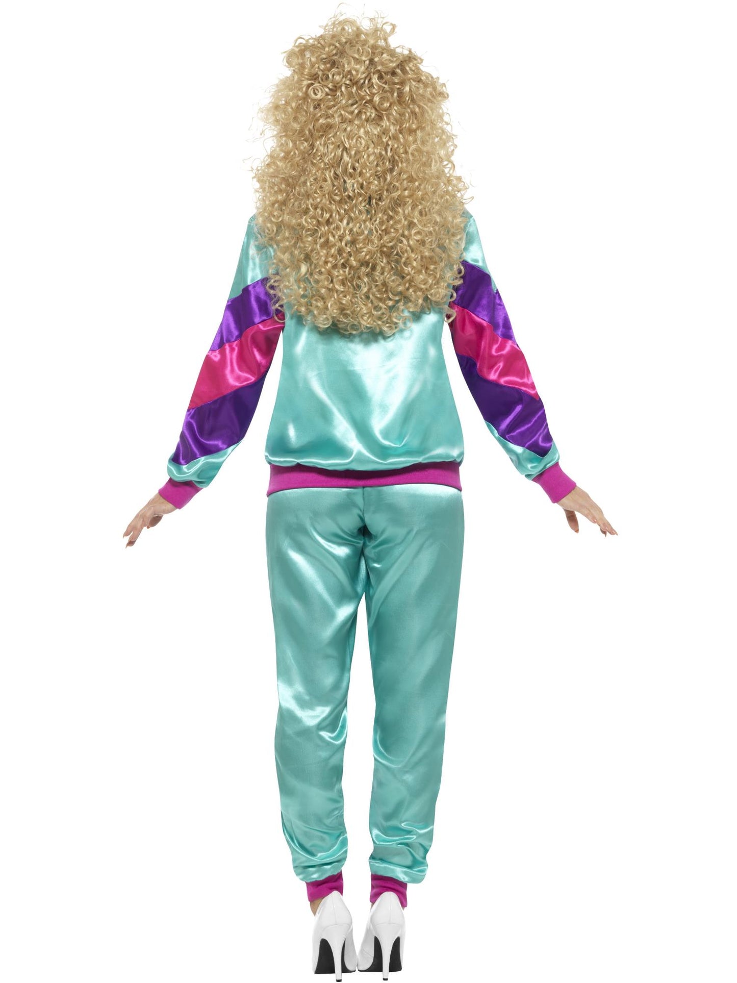 80s Height of Fashion Shell Suit Costume, Female, Teal & Purple, with Jacket & Trousers.