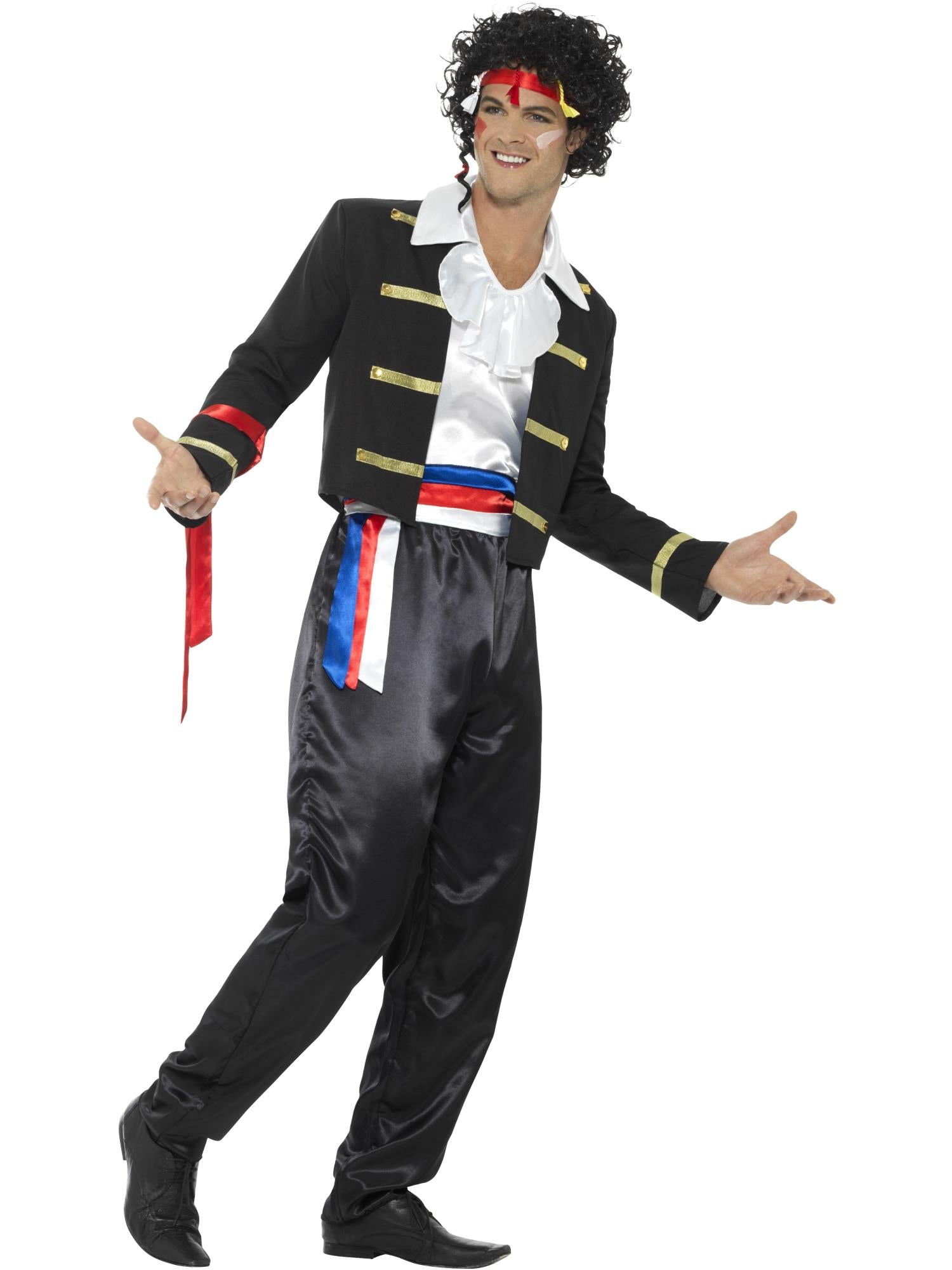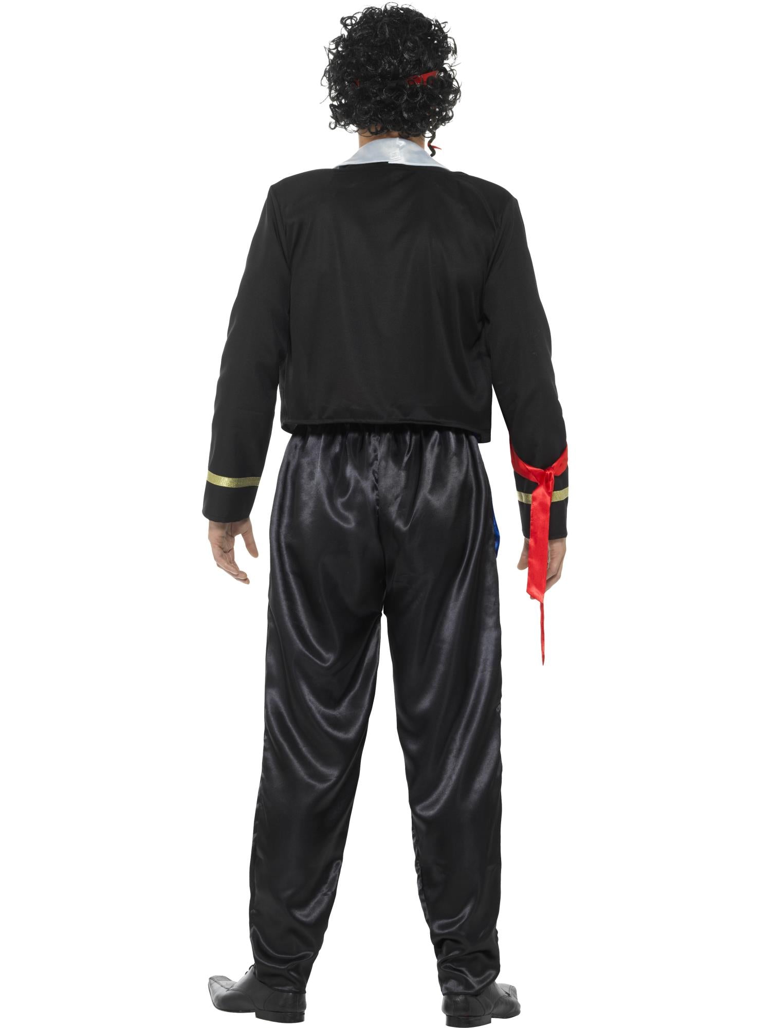80s New Romantic Costume, Black, with Jacket, Trousers, Faux Shirt & Headband.
