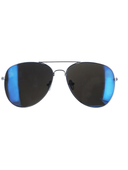 Dressed in uniform? Add these Aviator Specs to complete the look. The blue mirrored specs feature silver frames.