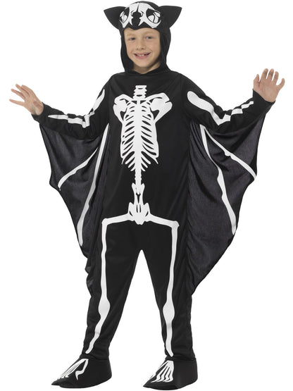 Bat Skeleton Costume, Black, with Hooded Bodysuit & Attached Wings.