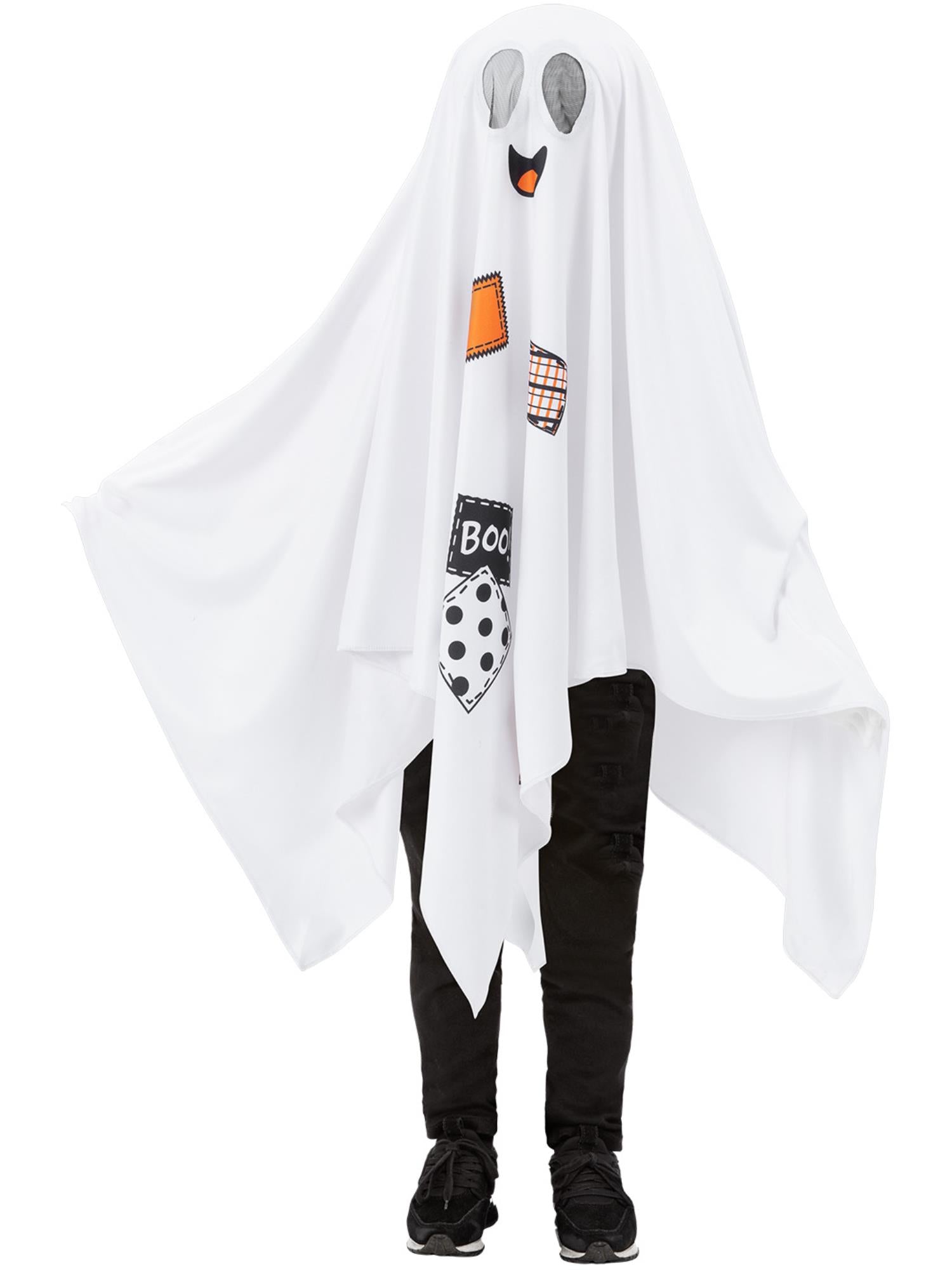 Boo Ghost Costume, Hooded Poncho with Internal Headband