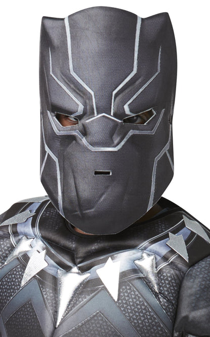 Calling all wannabe Wakandan Kings! This officially licensed Black Panther costume is just what you need to rise to the challenge. The printed black and grey polyester jumpsuit has all the important details needed to create an authentic Black Panther look, including the all-important superpower-giving claw necklace in metallic silver, a shiny silver belt, and silver bands on the arms. Foam padding in the chest, abdomen, and shoulders adds a fun bit of muscle, and the outfit also includes a foam mask to totally transform the wearer into an instantly recognisable superhero in seconds! The suit fastens at the back with Velcro, and the mask, with eye holes and a small slit at the mouth, is secured with an elasticated strap behind the head. Black Panther lives!