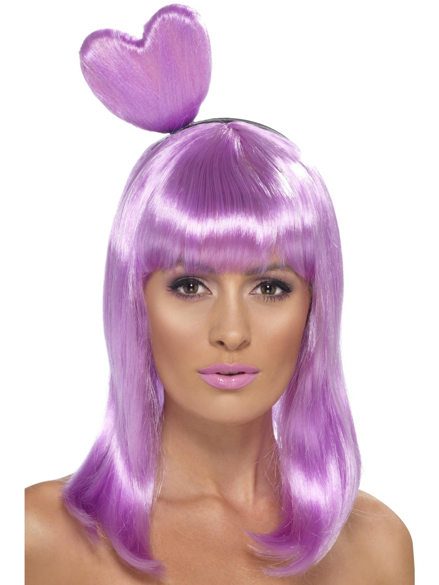 Look as sweet as candy with the Candy Queen Wig. This lilac wig comes with a heart headband.