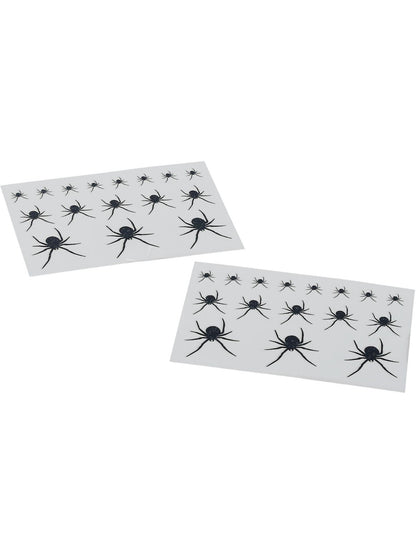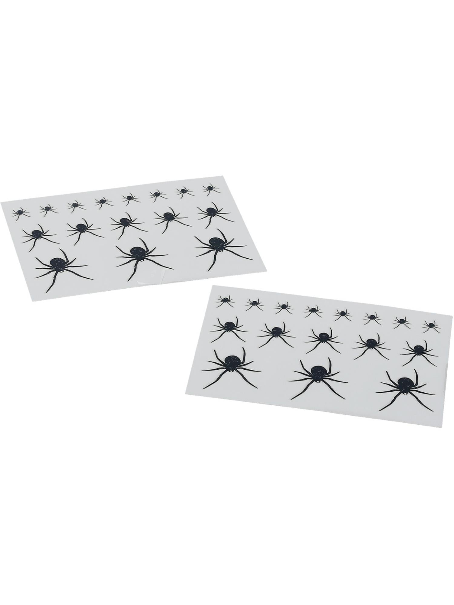 Crawling Spider Tattoo Transfers, Black, with X2 Sheets Per Pack, 16 Spiders on Each.