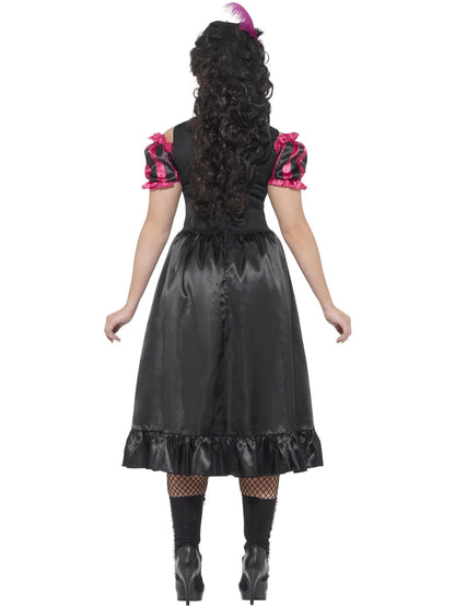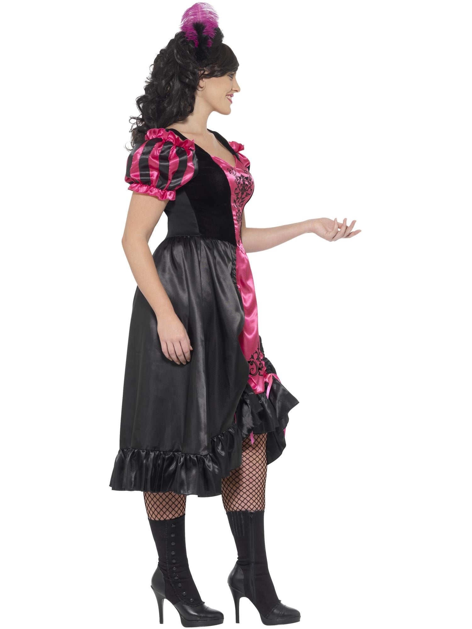Transform into a saloon girl in the Curves Sassy Saloon Costume. The pink and black dress comes with a feather hairclip, simply add fishnet tights and boots to complete your western-inspired look.
