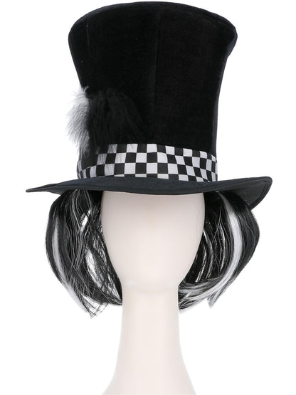 Dark Tea Party Top Hat, Black, with Hair.