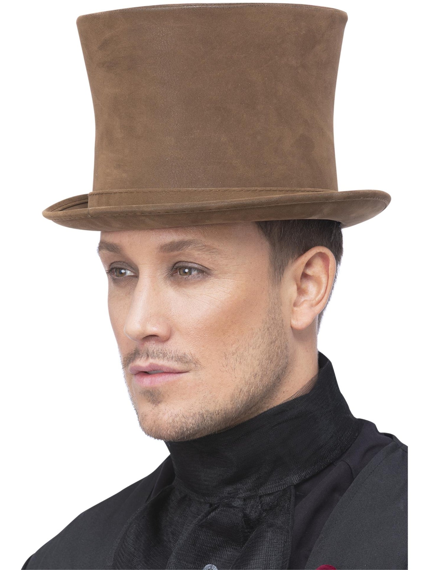 Deluxe Authentic Victorian Top Hat, Brown, Suede Look