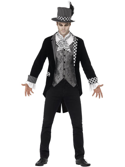 Deluxe Dark Hatter Costume, Black, with Jacket, Mock Shirt & Top Hat.