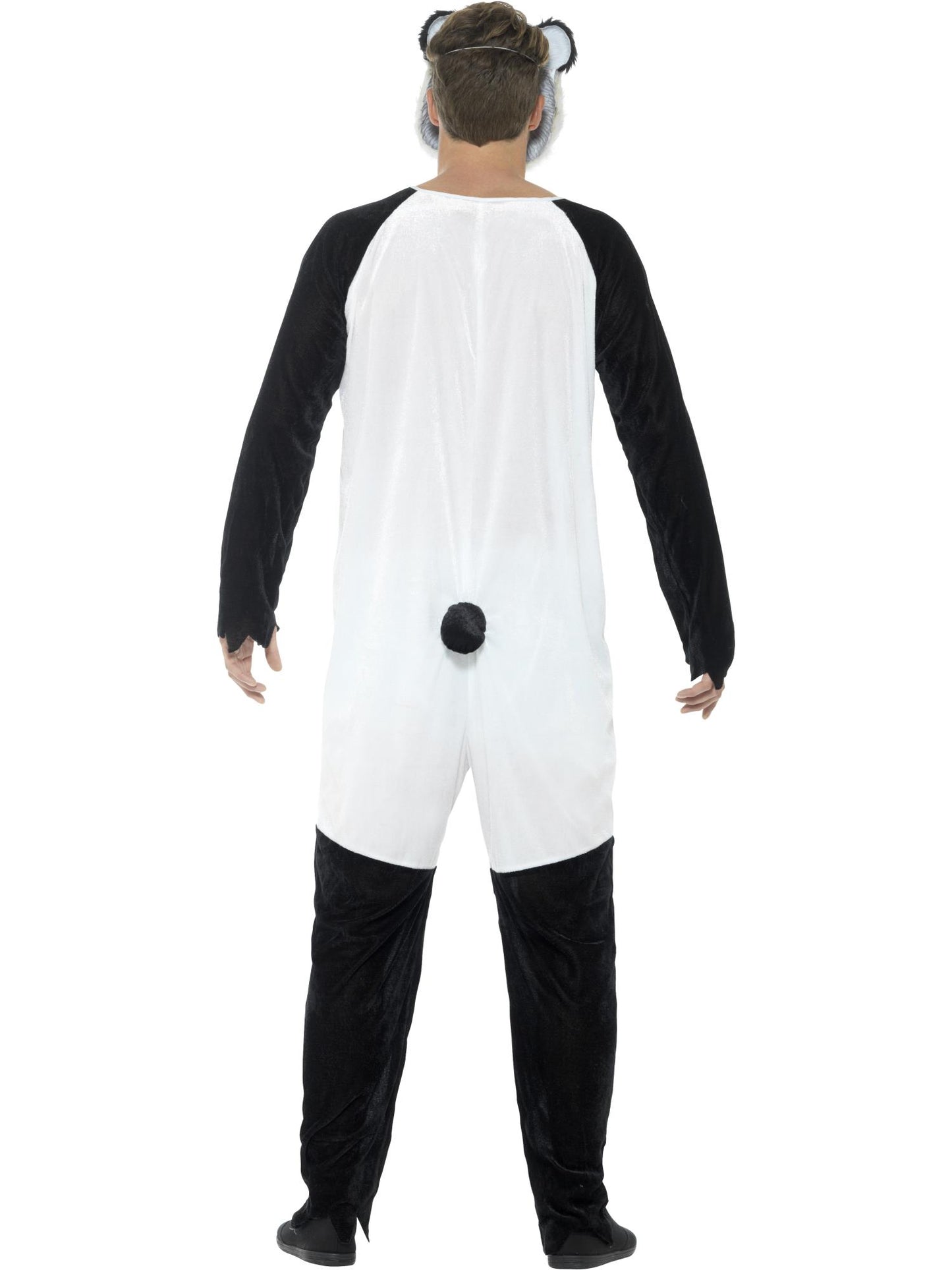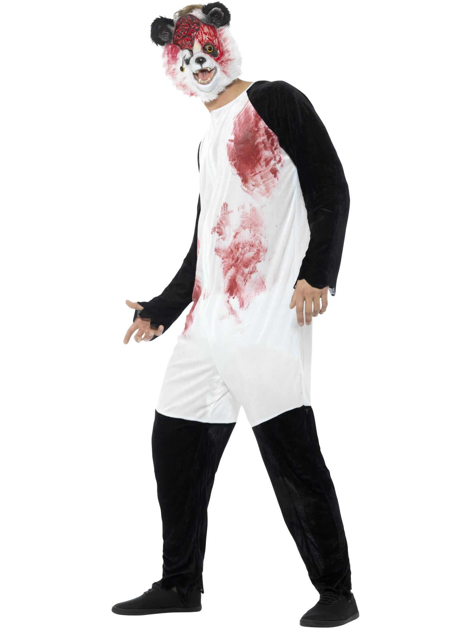 Men's Zombie Panda Costume, Black & White, with Bodysuit & EVA Mask.