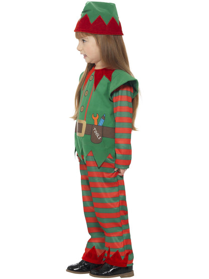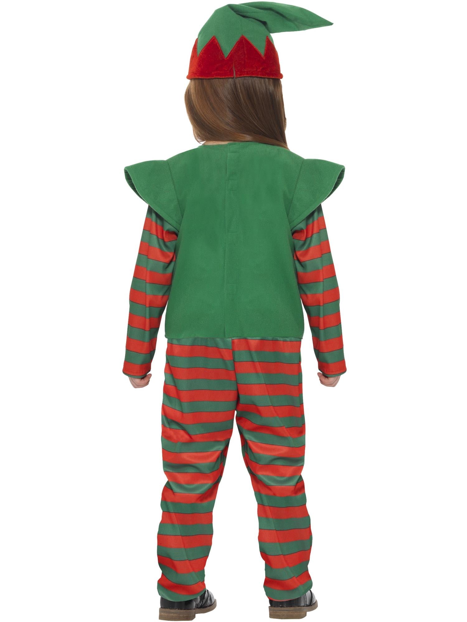 This red and green Elf Costume comes with a green and red Elf Hat, and has detailing of a belt, buttons, and tool pouch with a spanner in it. This Elf Costume is effective, simply complete the Costume with a pair of black shoes or Elf Boots. This Elf Costume is perfect for Christmas parties, school Christmas events and School Nativity performances. This costume is unisex and available in a children's small, and toddler which is suitable for ages 3 -4 years.
