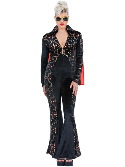 Elvis Black Rhinestone Ladies Jumpsuit with Cape