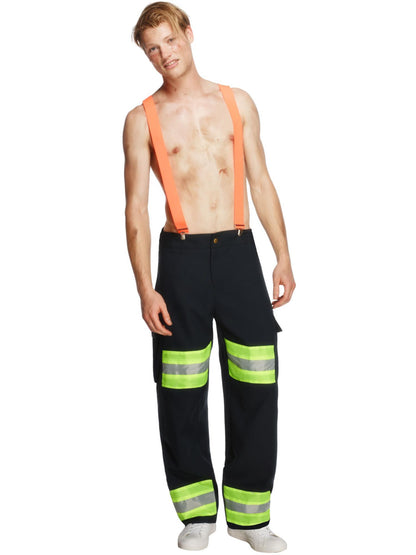 Save damsels in distress in the Fever Male Firefighter Costume. This playful outfit comes with trousers and braces. It's a great fancy dress costume for men. Add our Fireman's Hat for the complete look.