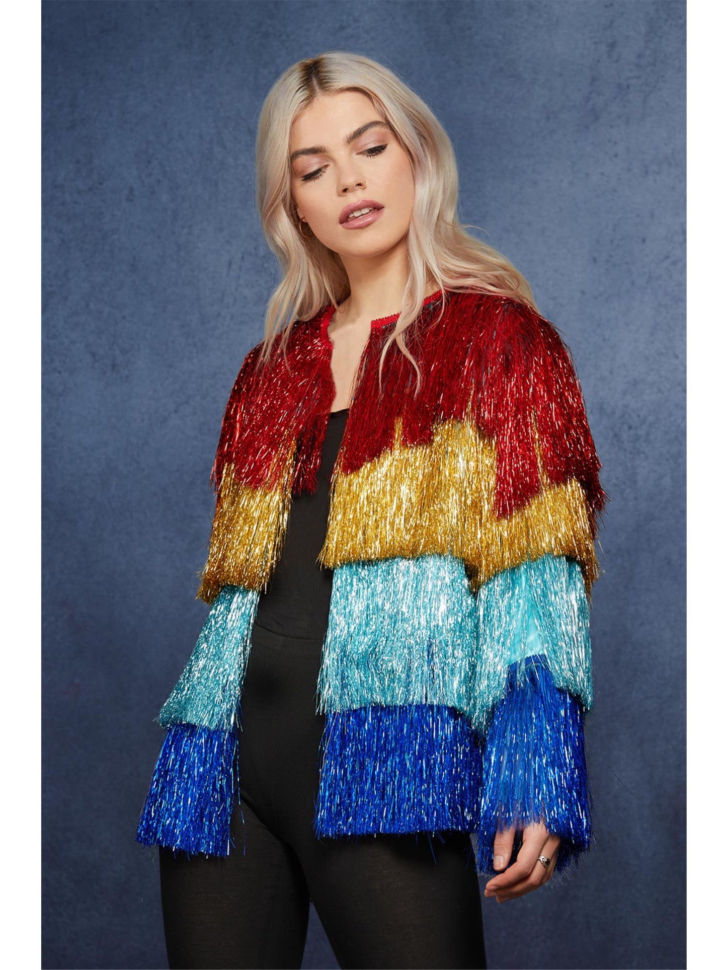 Fever Tinsel Festival Jacket, Multi-Coloured Rainbow