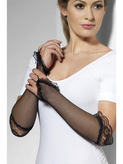Complete your alluring look with these Fingerless Fishnet Gloves in black with Lace. They're a great addition to any outfit.