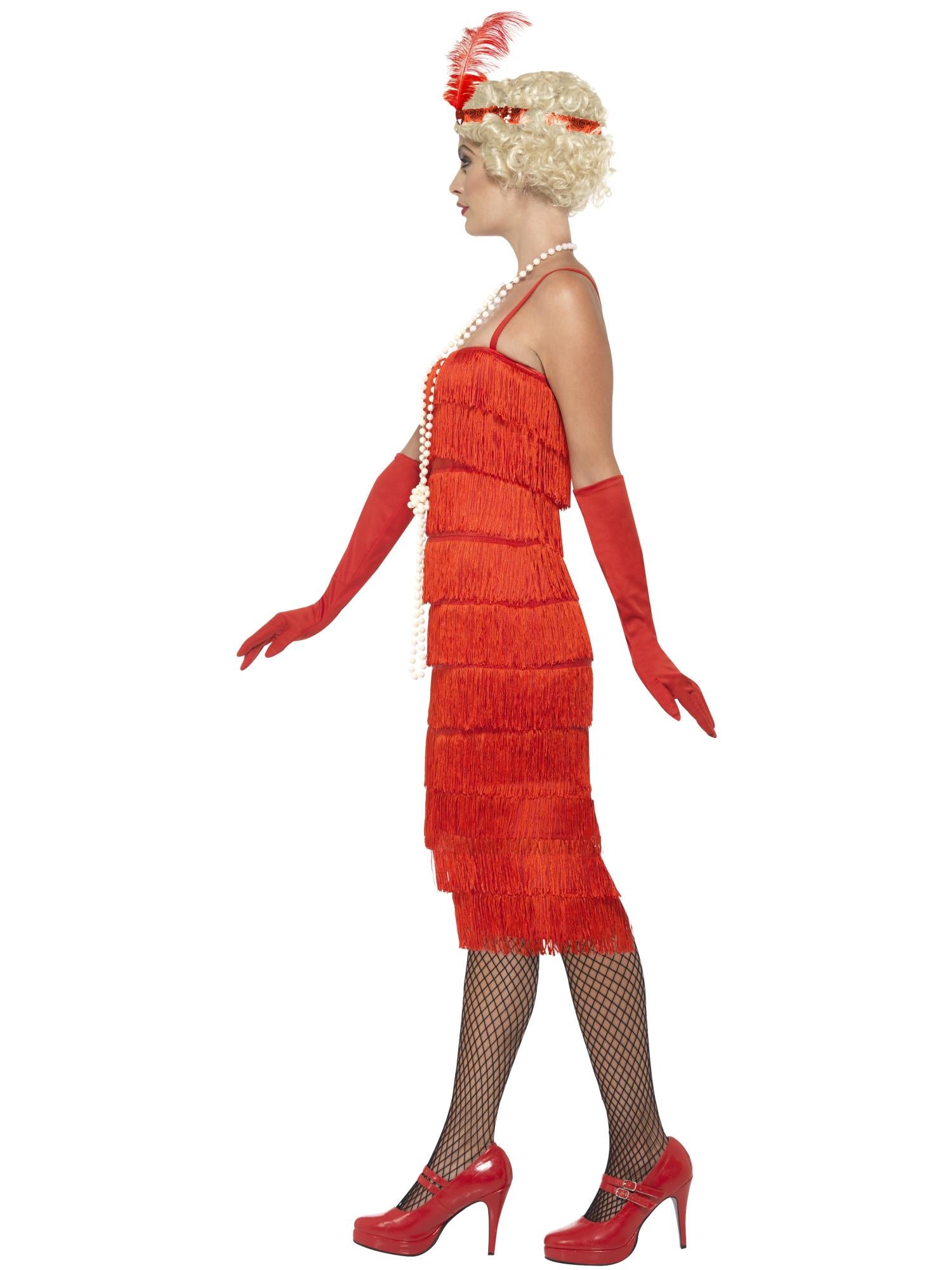 Flapper Costume, Red, with Long Dress, Headband & Gloves