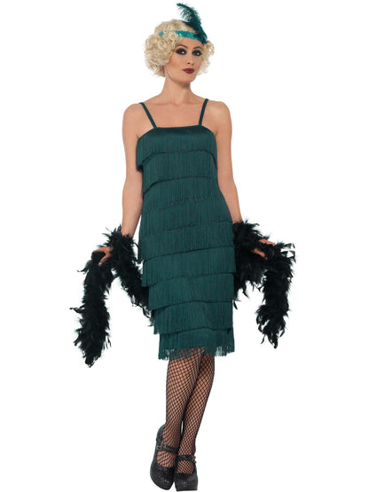 Flapper Costume, Teal Green, with Long Dress, Headband & Gloves