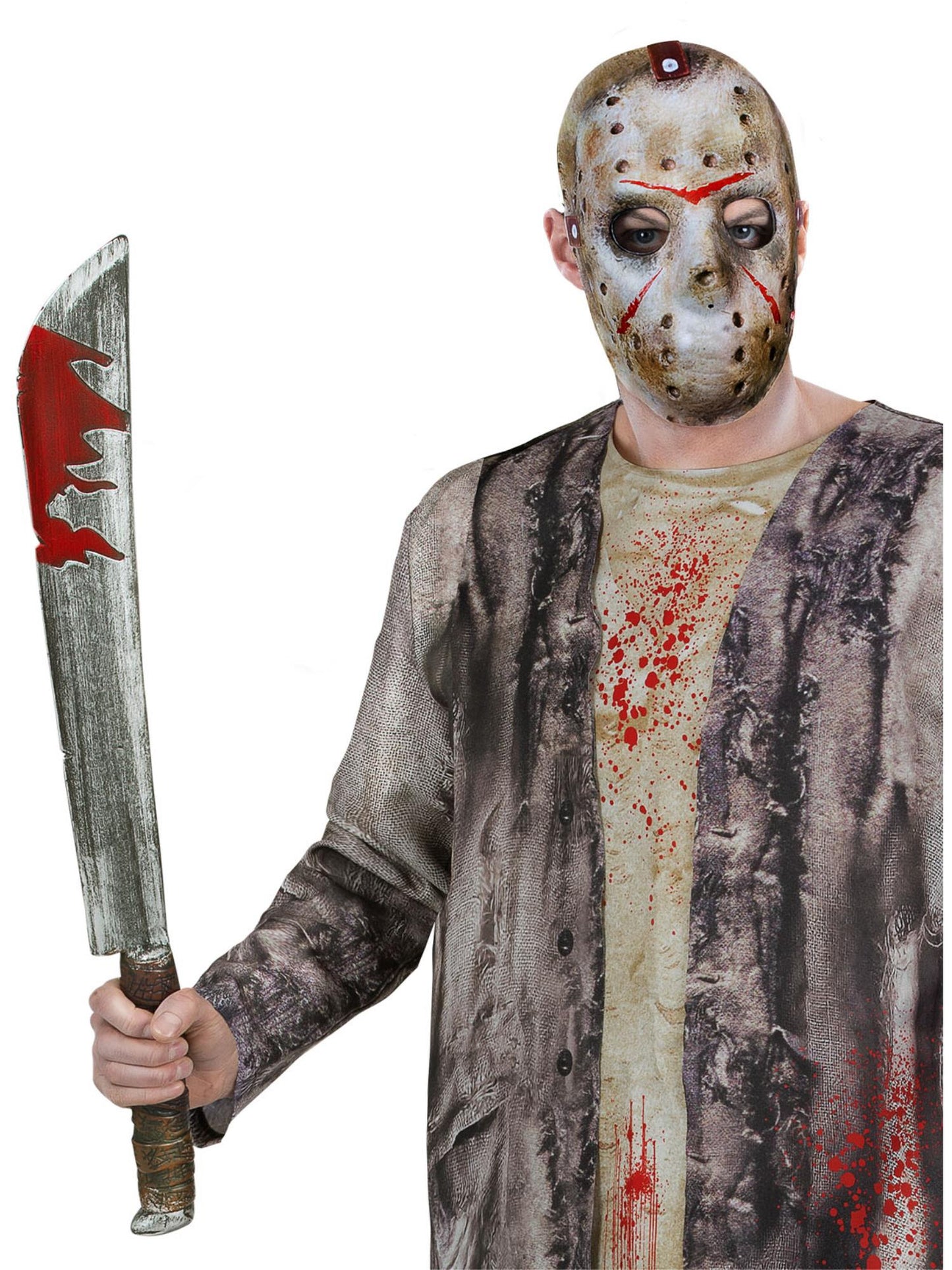 Embrace the iconic Friday The 13th style with the Jason Voorhees Machete & Mask Kit. Sport the signature hockey mask and wield the machete to wow the crowd on Halloween!