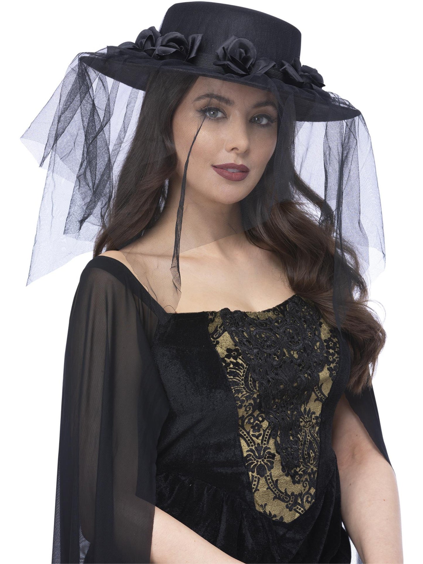 Gothic Black Widow Funeral Hat, with Roses & Veil