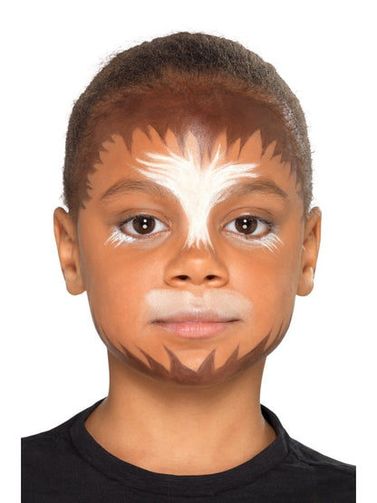 Kids Halloween Werewolf Make Up Kit, Aqua, Brown, 4 Colours, Fangs, Fur Stickers, Sponge & Brush.